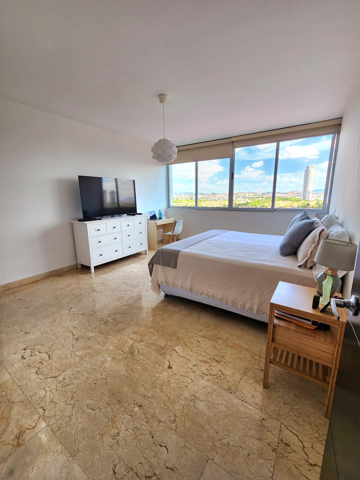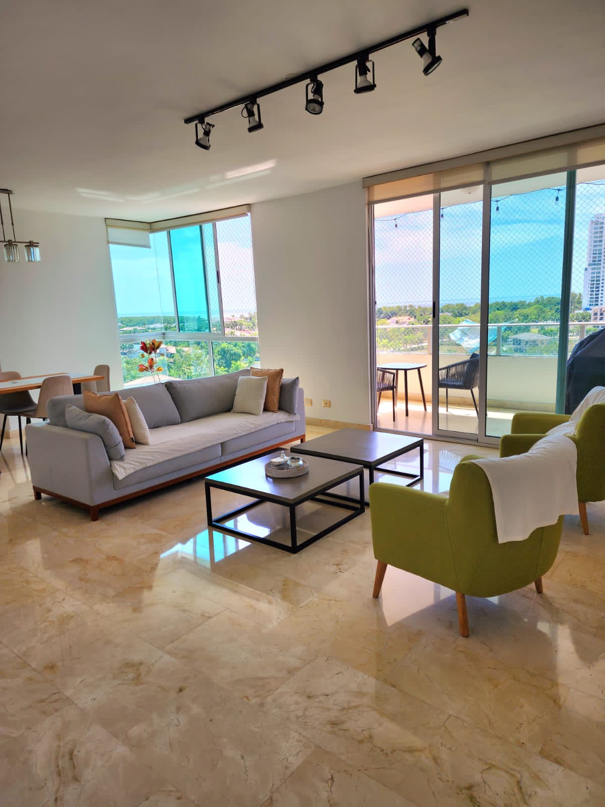 Espectacular apartamento de 232 M², 3 habitaciones todas con walk-in closet y baño, medio baño adicional, amplia cocina, sala y comedor.