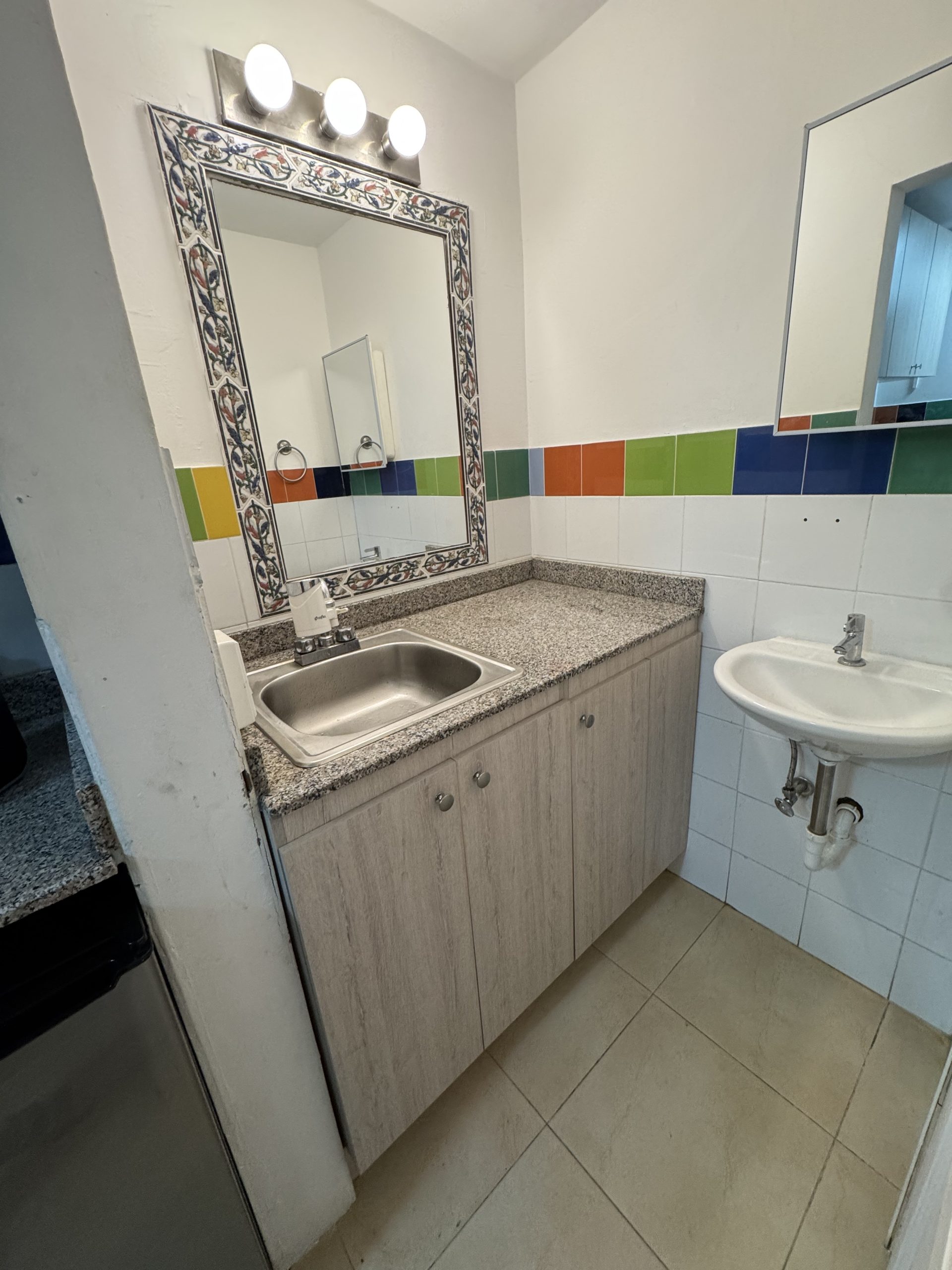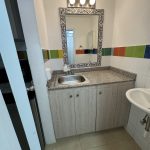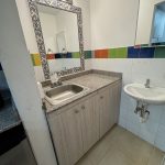 Baño de visitas, nevera grande oculta y mueble con gran capacidad de almacenamiento oculto