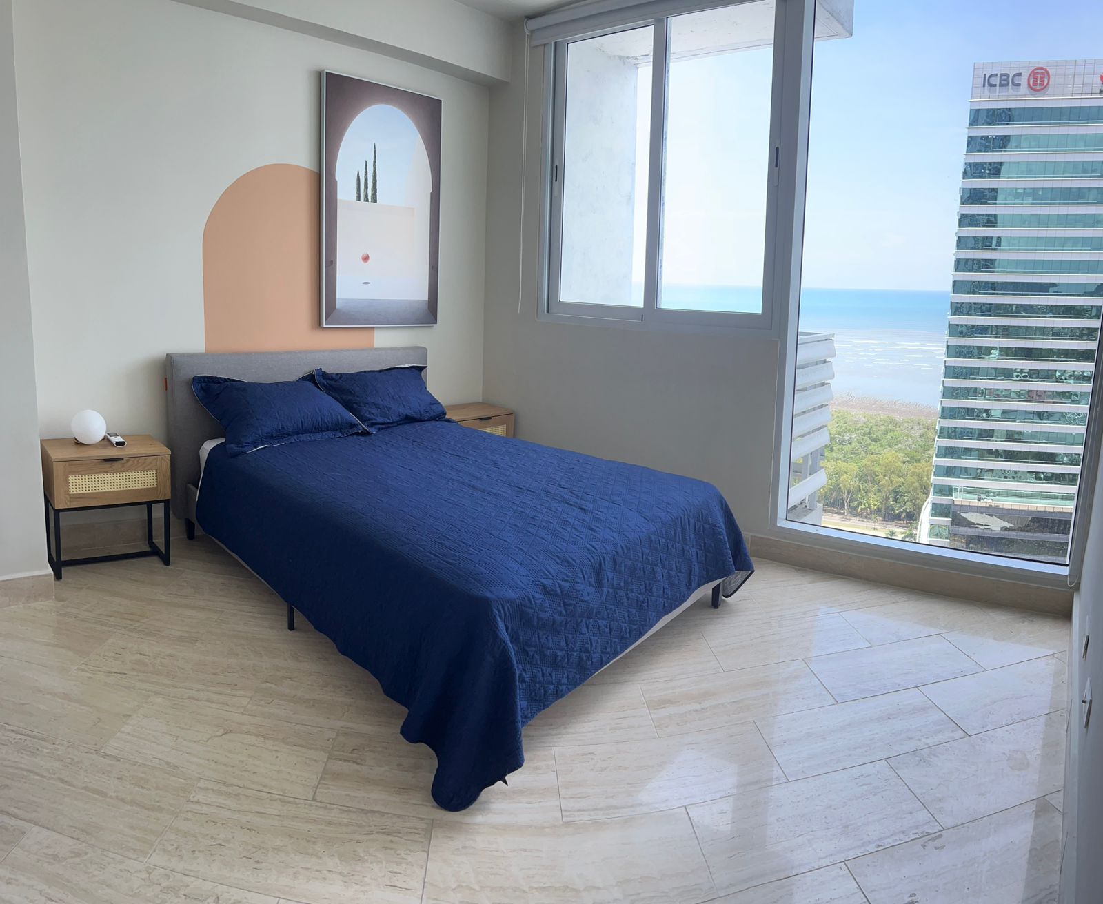 Piso Alto, Modelo C, 202 m2 distribuidos en Sala, comedor, den, balcón con vista al mar, tres recamaras con sus baños, sala familiar, cuarto y baño de servicio, dos estacionamientos.