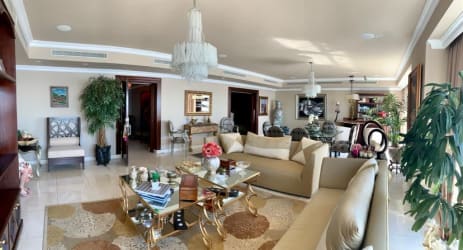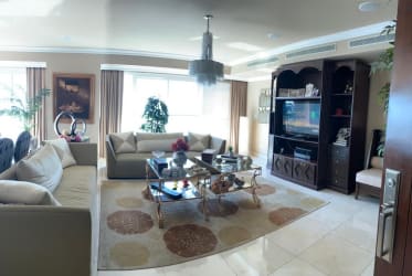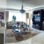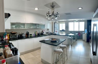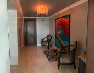 El apartamento de 330 m2 consta de sala, comedor, área de bar o den,